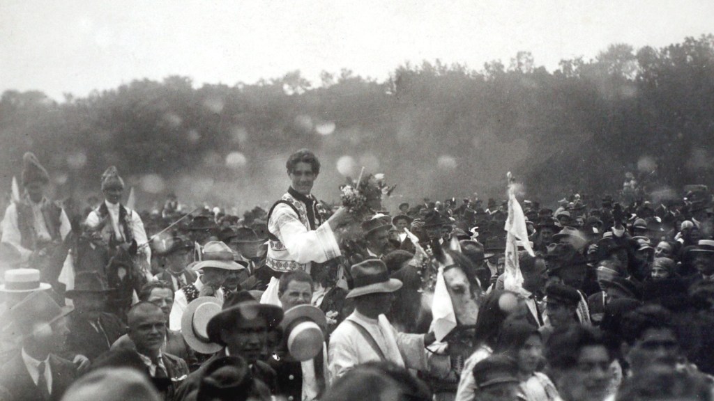 “There was suddenly a hush in the crowd. A tall, darkly handsome man dressed in the white costume of a Rumanian peasant rode into the yard on a white horse. He halted close to me, and I could see nothing monstrous or evil in him. On the contrary. His childlike, sincere smile radiated over the miserable crowd, and he seemed to be with it yet mysteriously apart from it. Charisma is an inadequate word to define the strange force that emanated from this man. He was more aptly simply part of the forests, of the mountains, of the storms on the snow-covered peaks of the Carpathians, and of the lakes and rivers. And so he stood amid the crowd, silently. He had no need to speak. His silence was eloquent; it seemed to be stronger than we, stronger than the order of the prefect who denied him speech. An old, whitehaired peasant woman made the sign of the cross on her breast and whispered to us, “The emissary of the Archangel Michael!” Then the sad little church bell began to toll, and the service which invariably preceded Legionary meetings began. Deep impressions created in the soul of a child die hard. In more than a quarter of a century I have never forgotten my meeting with Corneliu Zelea Codreanu.”—Hungarian Jewish historian, Nicholas Nagy-Talavera