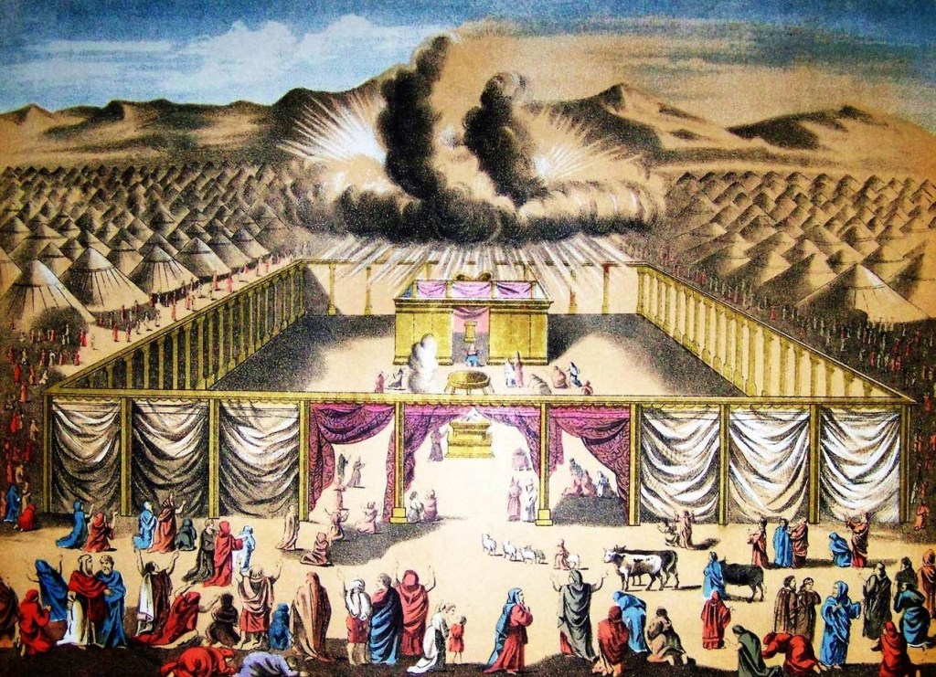 An 1890 illustration of the Tabernacle, with the presence of Yahweh signalled by a cloud of dark smoke. Credit: Holman Bible