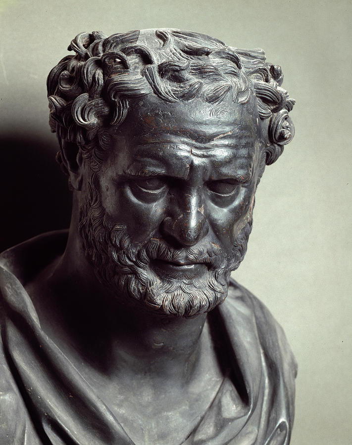 - Origins and School: Uncertain origin; of the school of Greek natural philosophers; traditionally credited as the founder of Greek ATOMISM with his student, Democritus, though an earlier candidate for the foundations of early atomism in ancient Greece is Moschus of Sidon. The early atomists were countering the paradoxes of Zeno of Elea on the nature of motion and the infinite divisibility of objects. A hundred years after Democritus, the Hellenistic era led to a revival of the atomist philosophy. Epicureans (341-270 B.C.) formed a community applying atomism to a philosophy of living a pleasant life, (Atomism: Pre-Socratic Philosophy), connecting scientific theory directly to a way of living. The Epicureans were widely read by the U.S. founders and early thinkers and practically applied in some of their lives as a guide alongside Stoic principles.